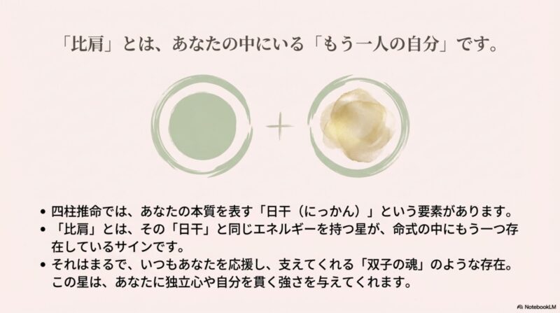 比肩は、通変星の中でも「自分と同質の存在」を意味します。