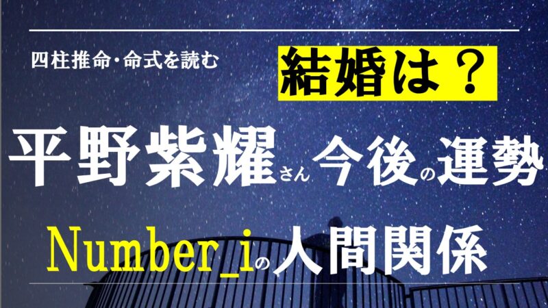 Number_iのメンバーはそれぞれの存在がお互いに干渉しない立ち位置に成っているのと星の相性が良いのでソロ活動が有ったとしてもクループ活動をメインにして行く方が平野紫耀さんの命式と運勢を考えればいい方向へ活動が広がると思います。