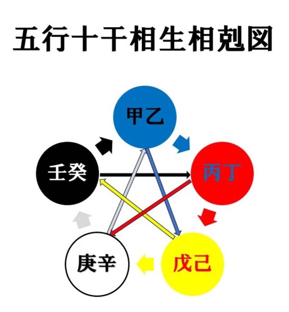 さらに五行と陰陽が組み合わさり十干が生まれ、