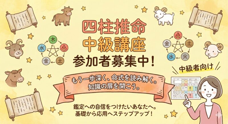 通変星の作用等、四柱推命の基礎を習得出来ている方向けの講座に成ります。